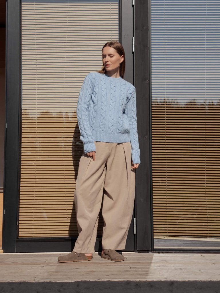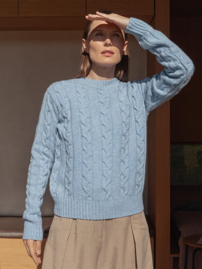 Elevate your wardrobe with this exquisite merino and cashmere wool sweater – a perfect gift for those who appreciate timeless and eco-conscious fashion. Meticulously hand-knitted, this high-quality sweater is every woman’s go-to solution for those busy days when outfit choices are a challenge.
