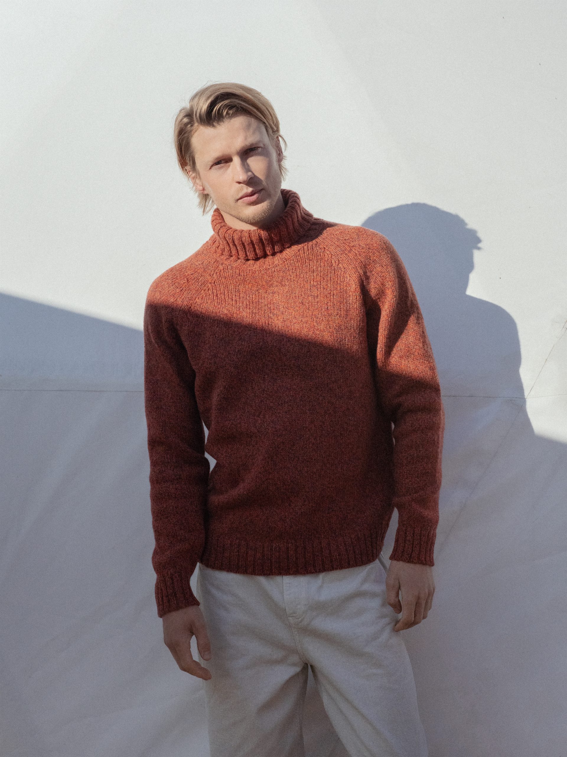 A cozy turtleneck sweater inspired by the tranquility of nature and sand dunes. This classic-silhouette sweater is perfect for both everyday wear and special occasions. The elegant melange yarn looks luxurious and pairs well with clothing in a variety of colors.
