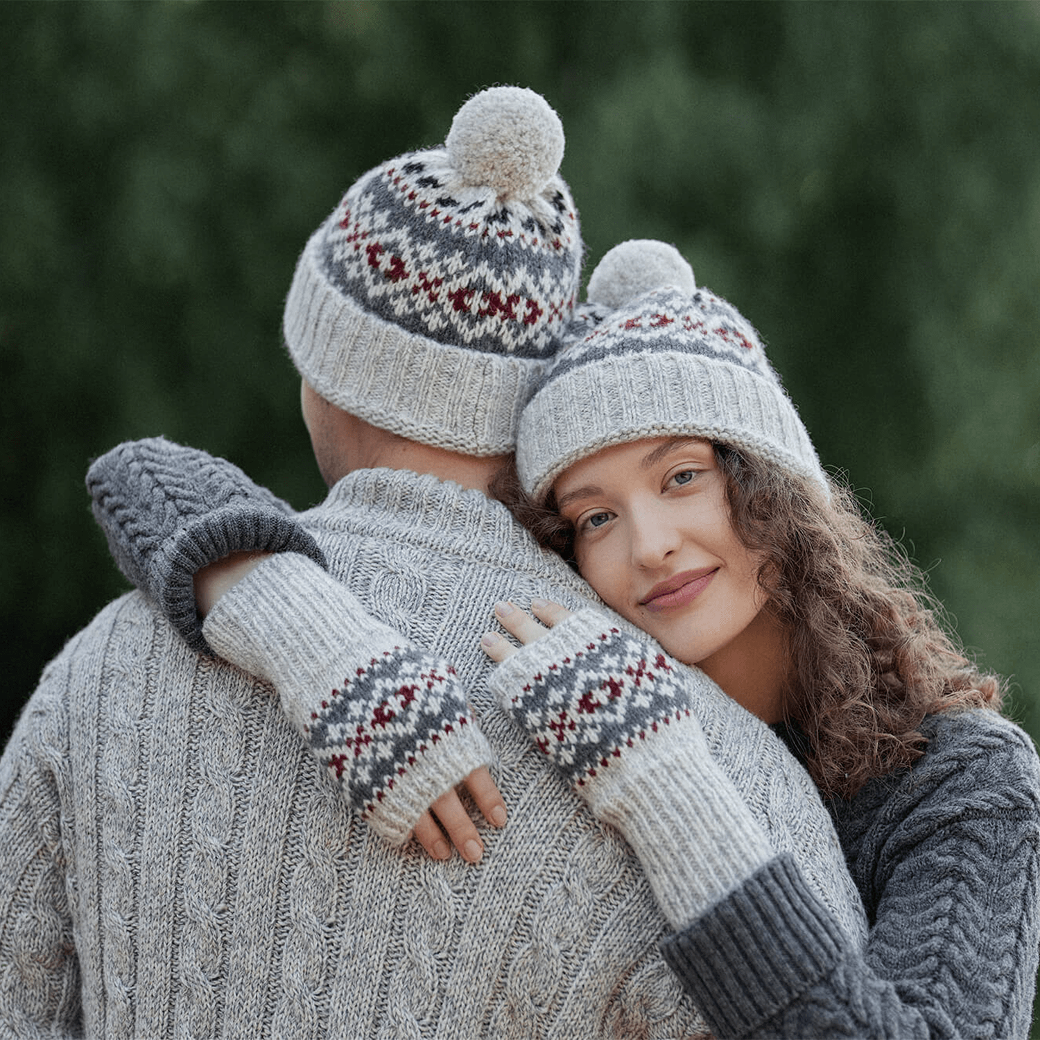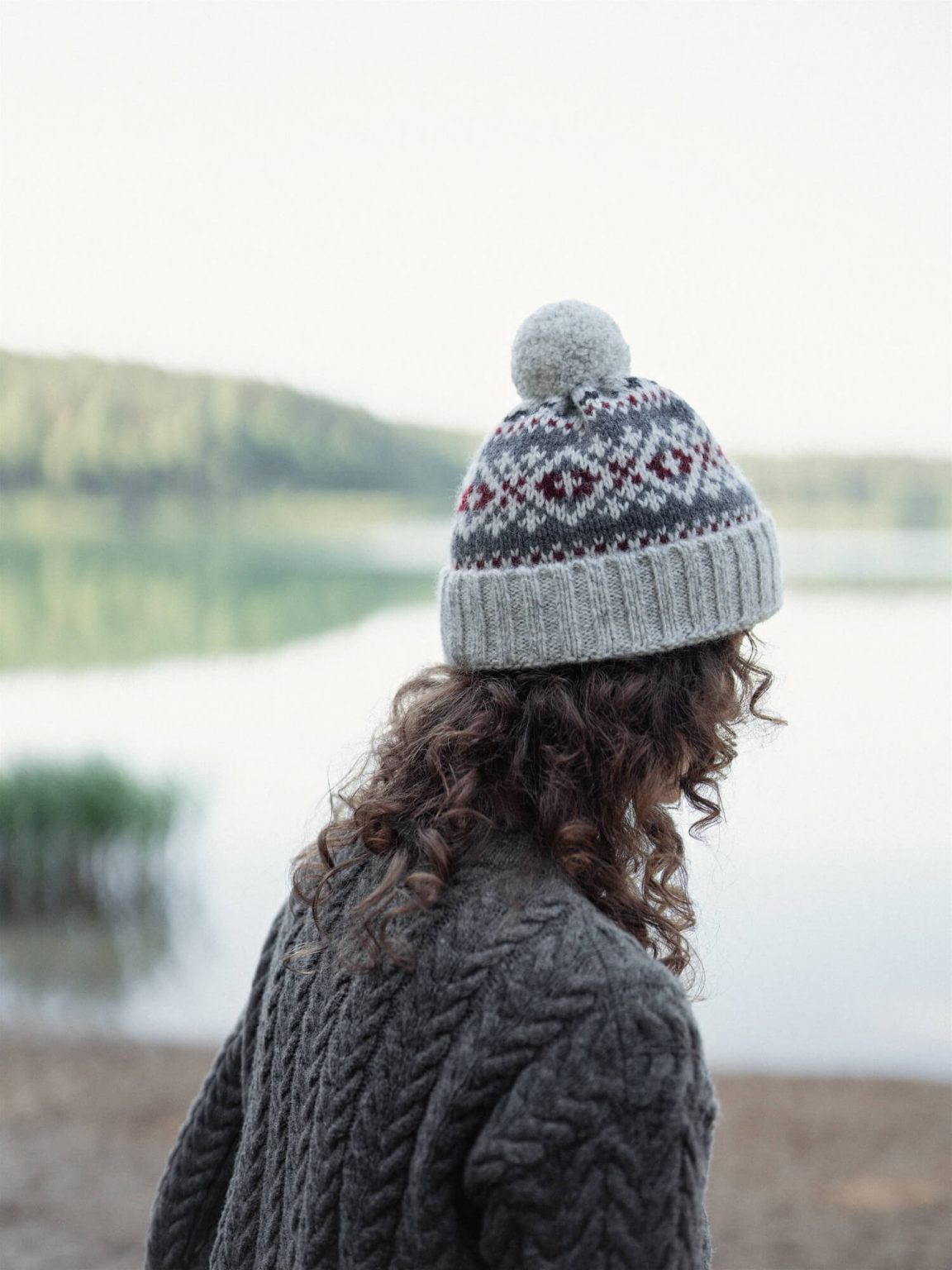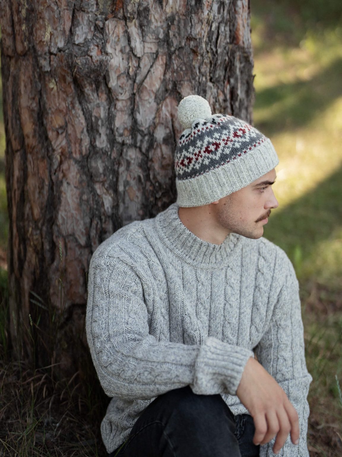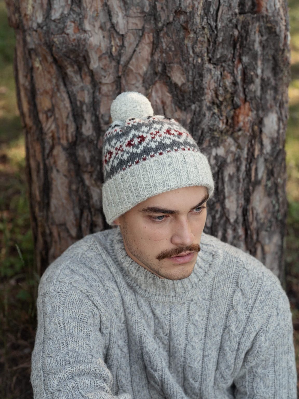 One size, grey color, pure wool bobble hat with ornaments is super warm & light. Ideal for chilly autum, winter weather. Breathable wool material will keep your head nice & warm. Features minimalist Wool House leather label.Made of 100% wool