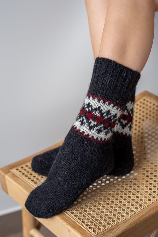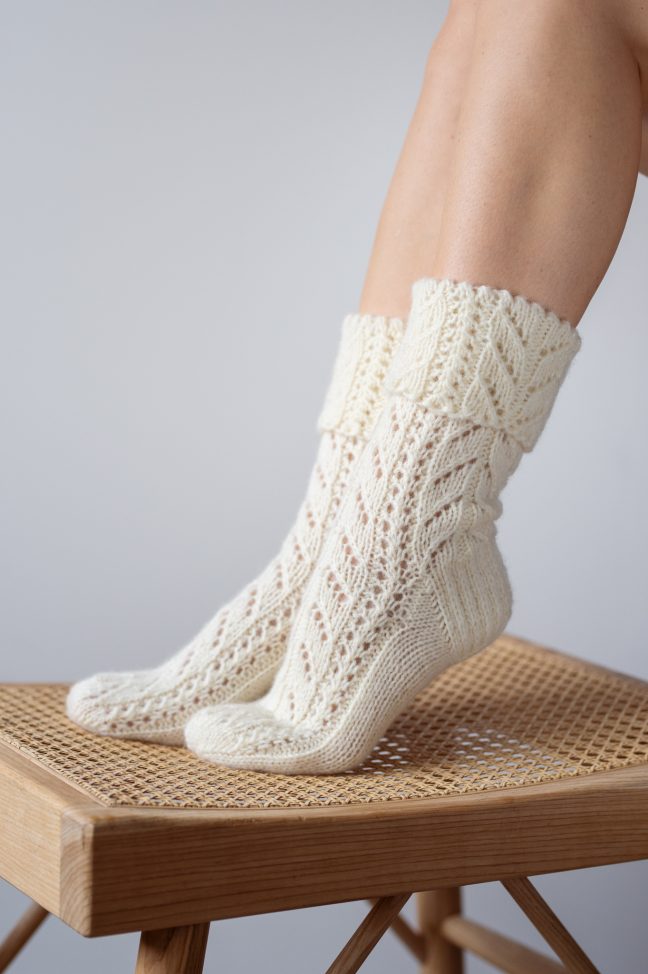 Vilnonės atlenkiamos kojinės su kiauraraščiu