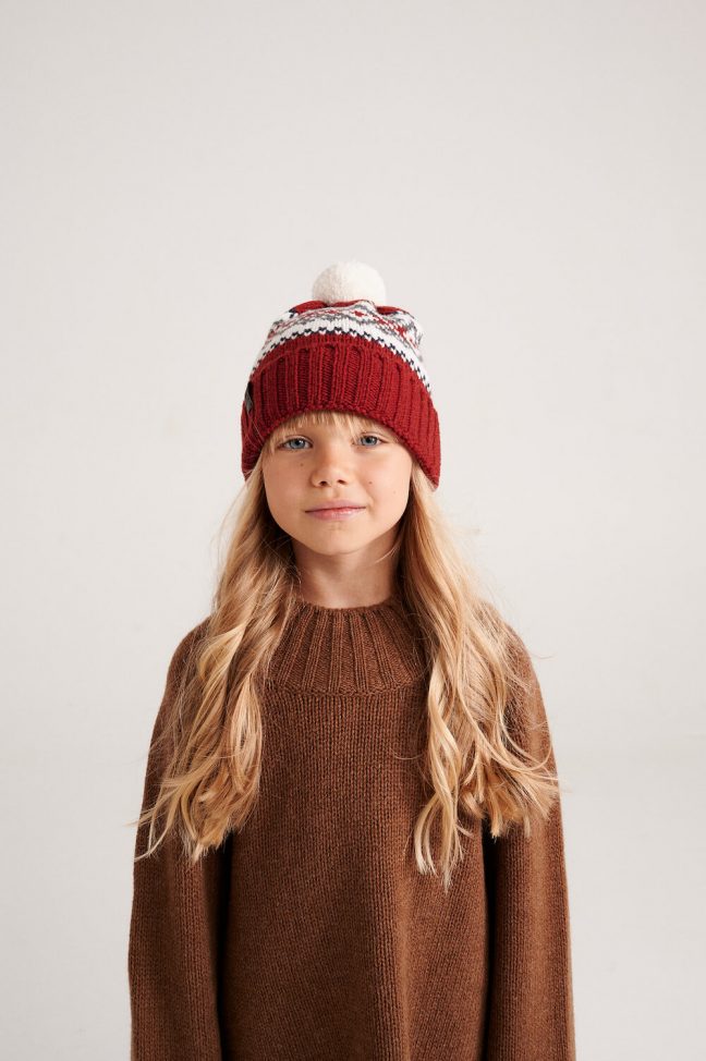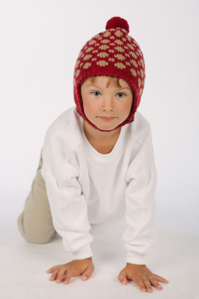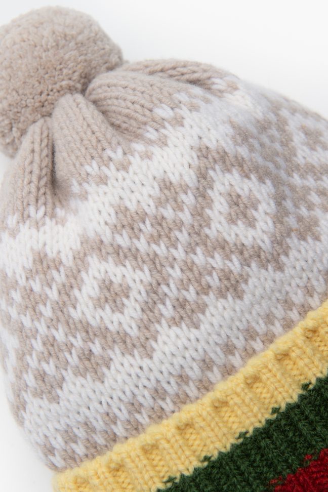 Kašmyro ir merino vilnos vaikiška kepurė su tautiniais raštais