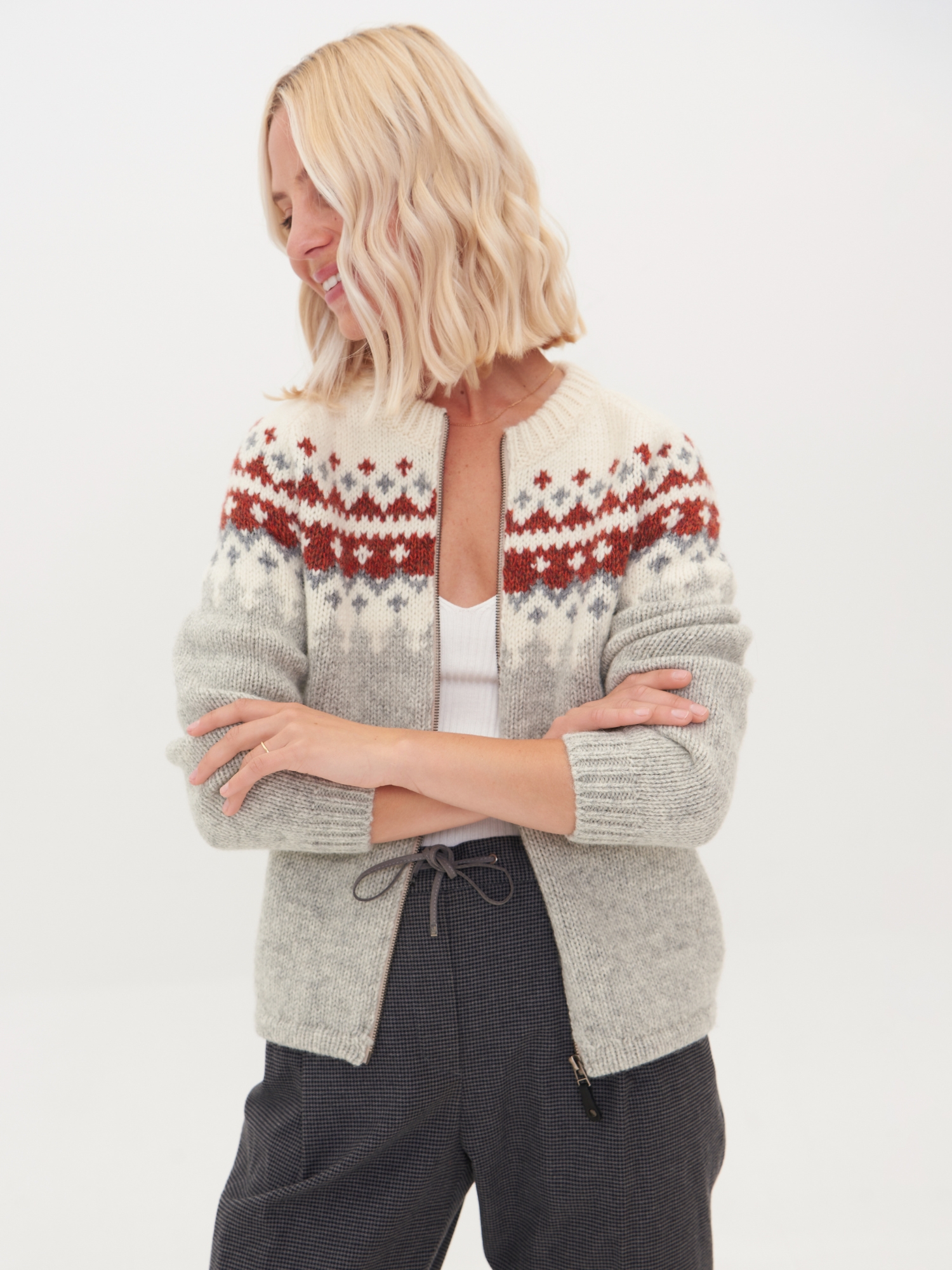 Varme (šiluma norvegų k.) megztinis įkvėptas skandinaviškos nuotaikos ir žiemos šaltuko. Puoštas šiaurietiškais raštais, priekyje užsegamas užtrauktuku.